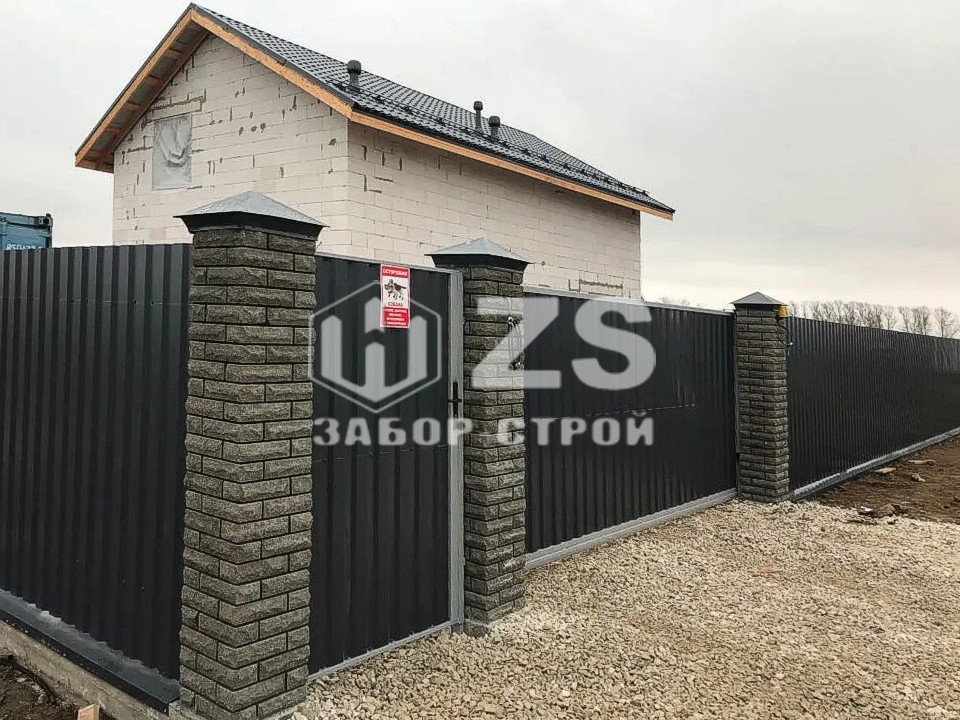 - Забор из профнастила с кирпичными столбами 6 соток